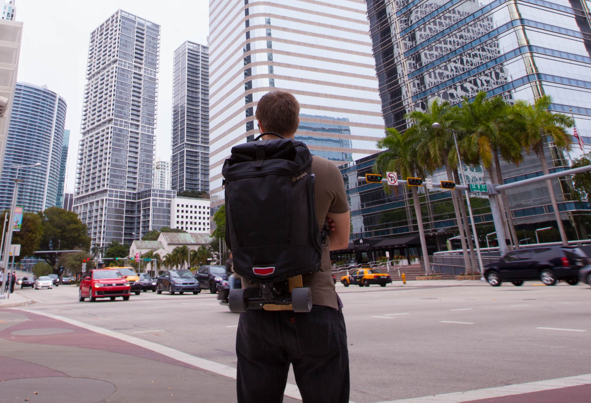 Приличный электроскейт стоит $300-400. Но - да, проще купить отдельный электроскейт и нормальный рюкзачок 😉