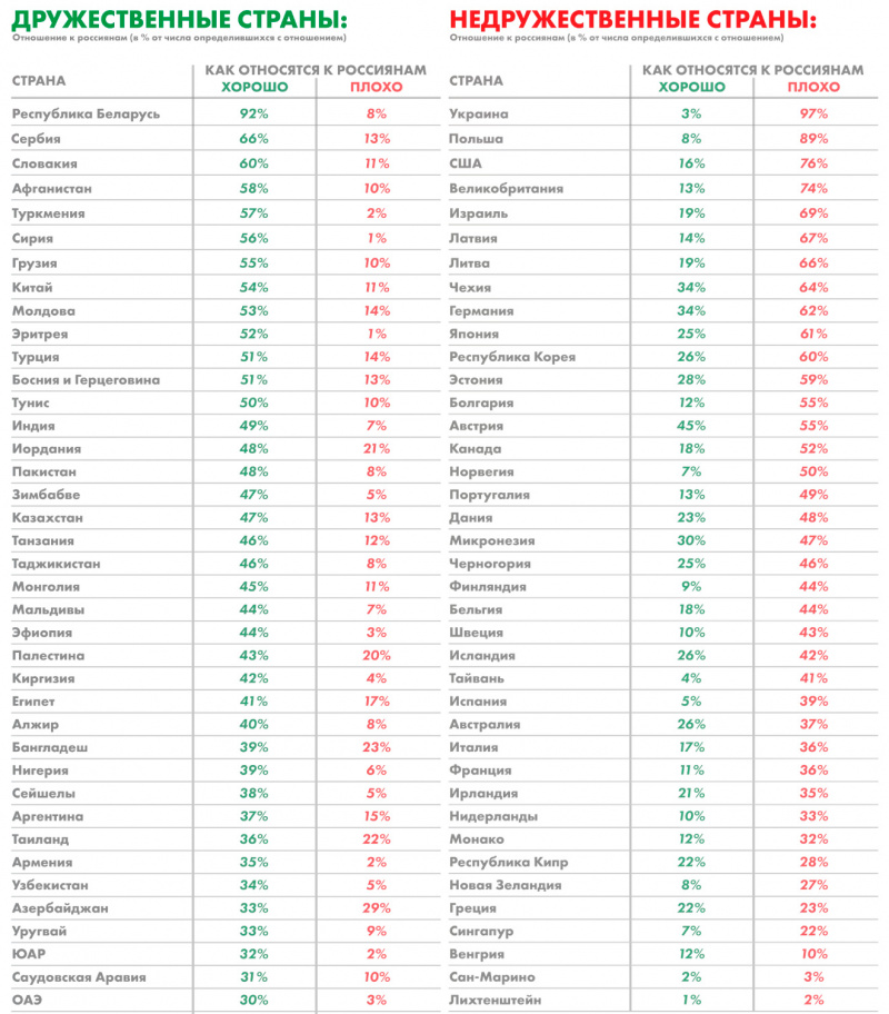Ну и вот сравнительная табличка. Кстати, из нее прямо следует, что в Украину россиянам путь категорически заказан. А многие почему-то туда все еще ездят, что странно.