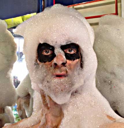 Хочется надеяться, что это он делает по своей воле - а то так и мнятся нарко-маниаки, заточившие бедного человека в ванной и заставляющие его ежедневно выдумывать новый фейс...А когда его фантазия закончится, мы увидим обезглавленную шею...Бр-р-р, кому теперь этот прото-сценарий четвертой Пилы подарить?! 😄)