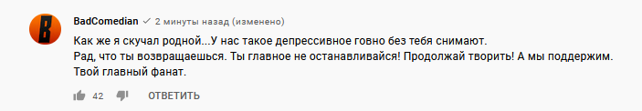 Да его полный радости от возвращения коммент там во первых строках на ютубе:)