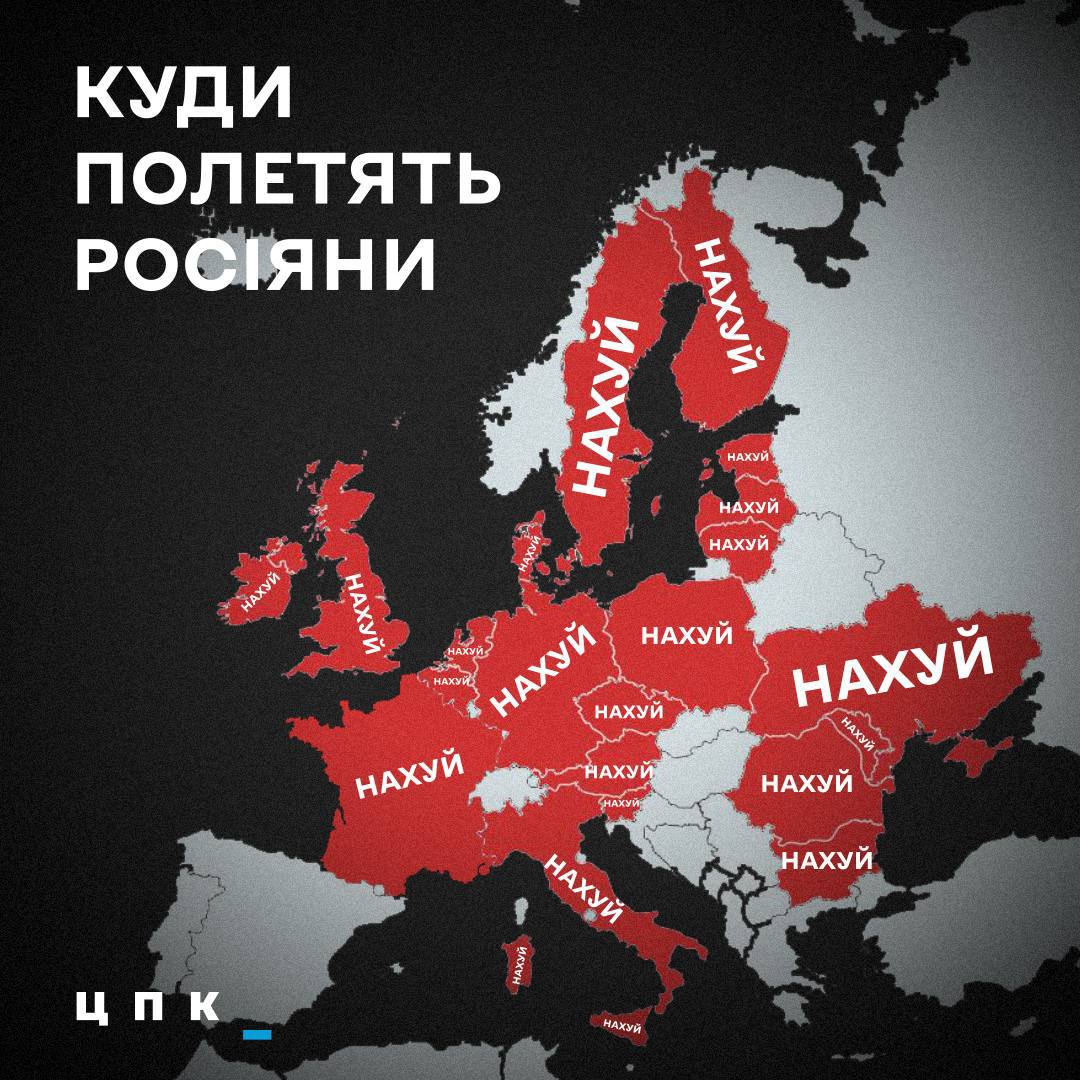 Вывеска совершенно дикая. Но есть у меня впечатление, что одной из целей войны была изоляция России от всего мира. Вводить выездные визы и запрещать народу ездить - не прокатило бы. А так отгородится Европа и остальной мир. Будет легче прививать ненависть к "вражескому" окружению. И Европа сама отгородится от России как от чумного барака.