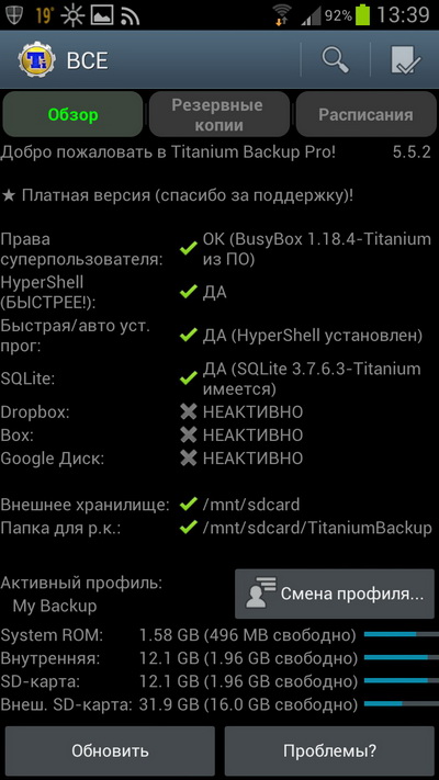 Ну и еще под рутованный телефон очень хорошо поставить Titanium Backup Pro - это мощнейшая штука, которая позволяет автоматом (или вручную) бекапить все приложения со всеми настройками.