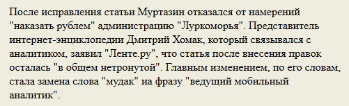 Кстати, из статьи про несомненно уважаемого Ведущего Мобильного Аналитика убран еще и национальный вопрос, т.е. убрана всякая информация про его происхождение. Неужто обиделся? В comedy club его надо отправить. При всей высокой нравственности сией передачи, его там научат.