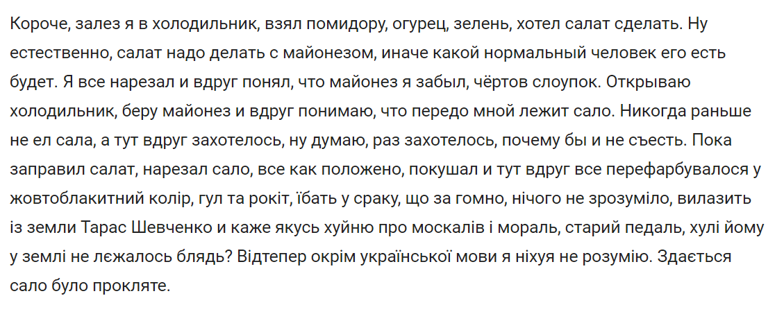 Дальше найдут сало, отравленное чесноком, и горилку, отравленную перцем.