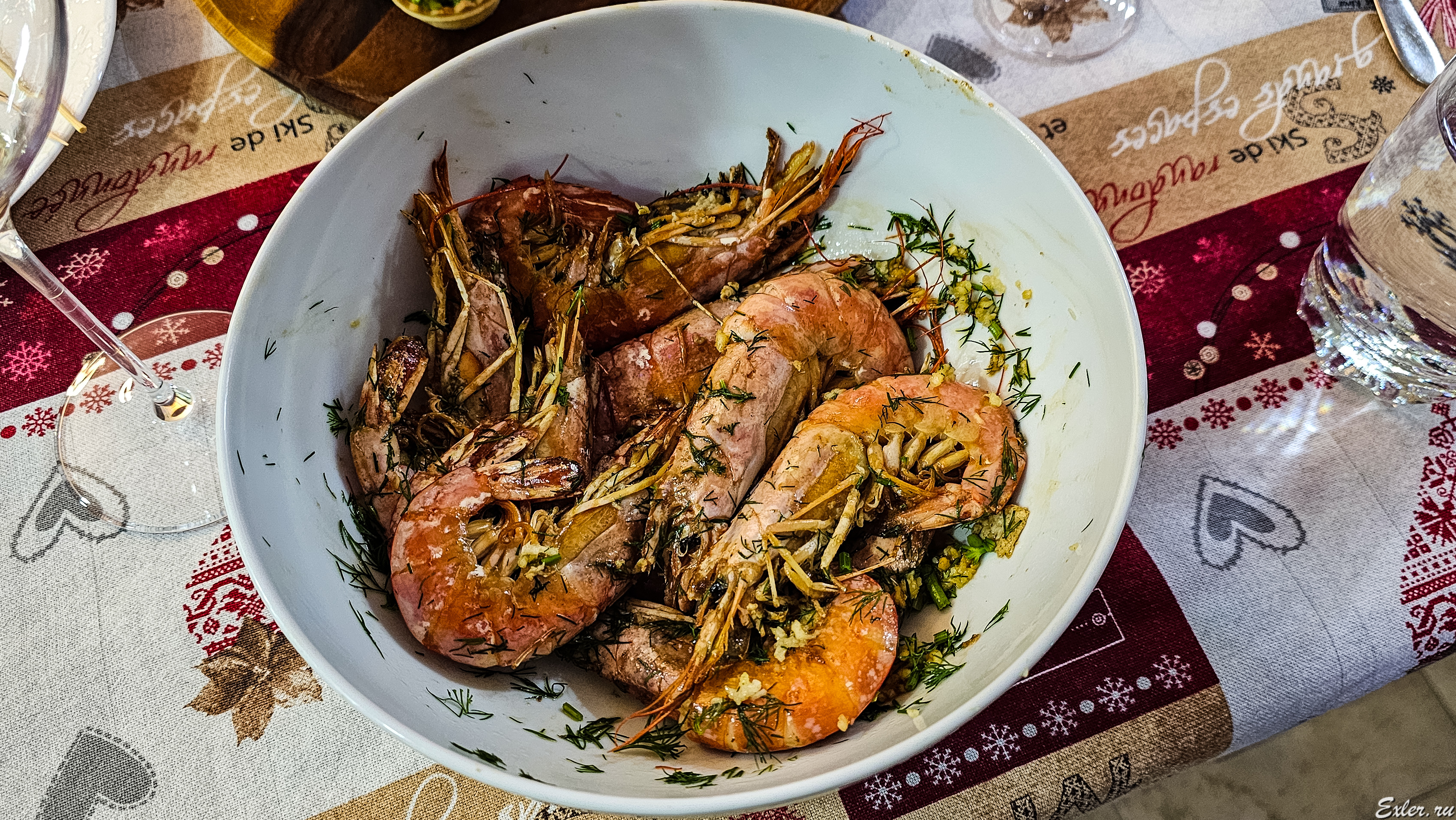 Я пожарил аргентинских креветок по своему обычному рецепту: в оливковом масле обжаривается чеснок до золотистого цвета, чеснок убирается, креветки жарятся на сильном огне максимум 2-3 минуты на стороне. Потом кладутся в миску, поливаются соевым соусом, туда выдавливается пара долек чеснока и посыпаются мелко нарезанным укропом и все перемешивается. Самая вкуснота!