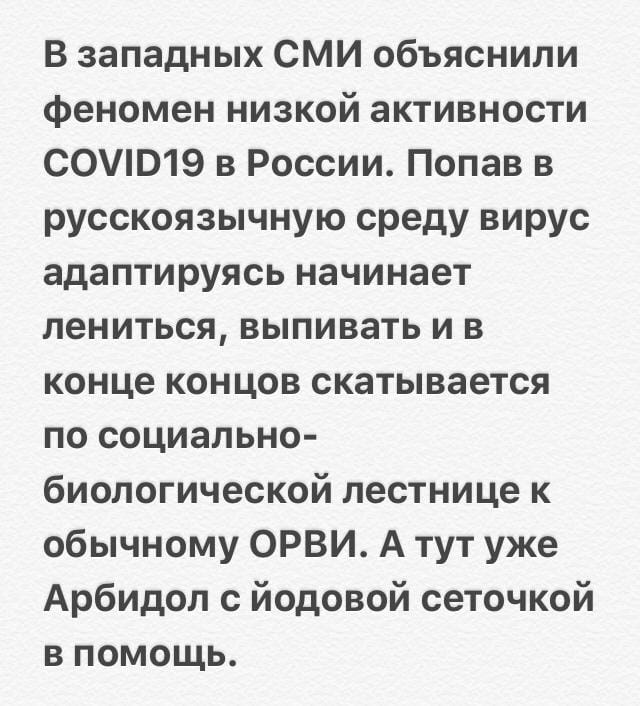 Присоединяюсь к поздравлениям. Что и требовалось доказать. Дуракам сказали, что не рабочие дни - дураки обрадовались и рванули на шашлыки и тест на долбоебизм сдали! Теперь под домашний арест!