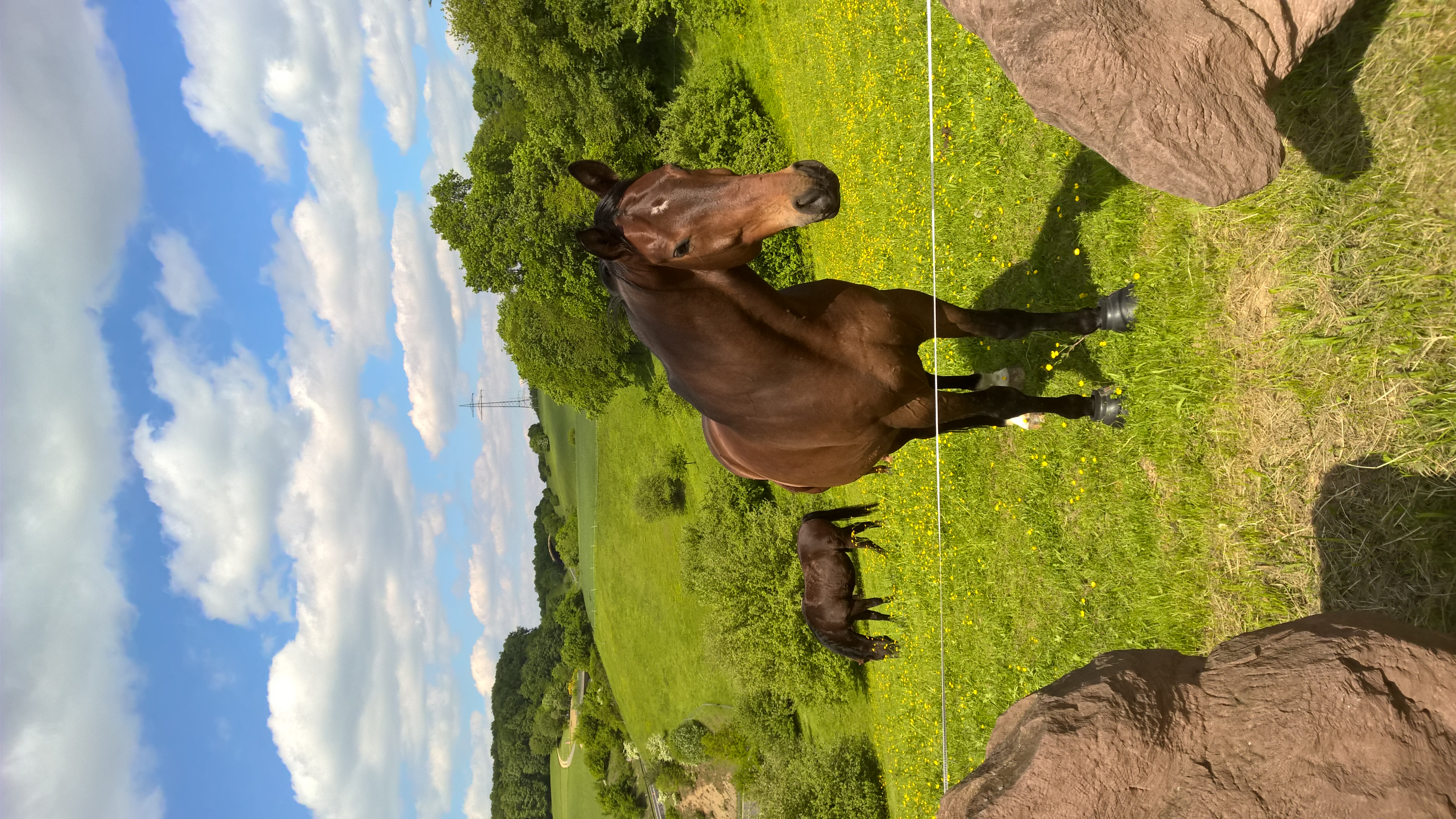 У нас утро тоже было пасмурное, но потом распогодилось. Погуляли вот по родной Оденвальдщине, лошадок помотрели 😄