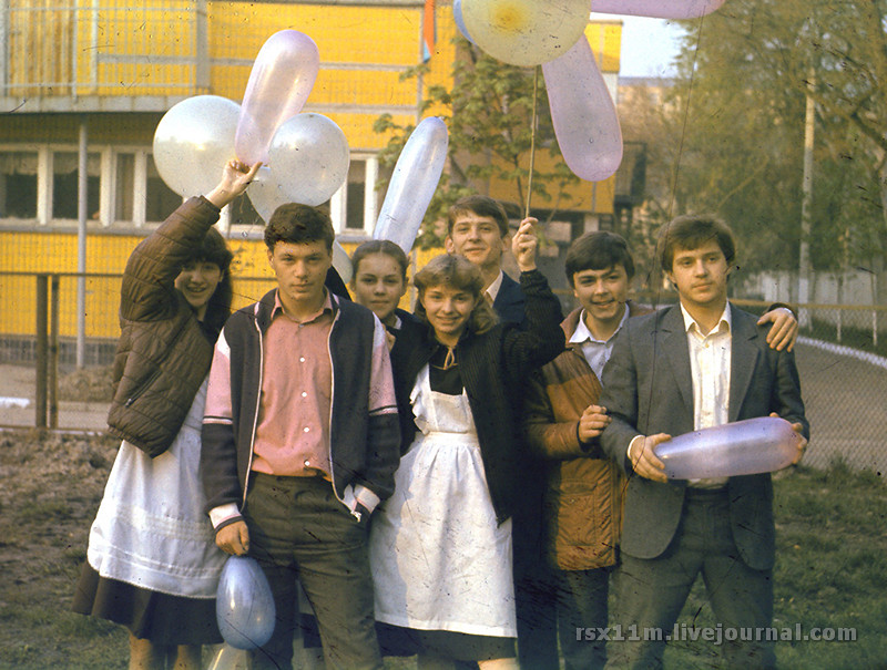 Для ностальгирующих - ровно 39 лет назад, 1 мая 1984г. Днепропетровск. Это не наша школа на заднем плане, это другая (но в нашем районе), нас в нее перед демонстрацией отправили получать шарики, картинки на палке и флажки. ORWO UT-18, "Зенит-Е", Г-44