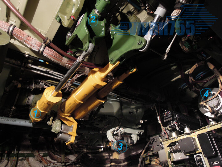 Рулем высоты управляют четыре гидропривода с двойной проводкой от штурвала до них, стабилизатор перекладывается одним электрическим приводом.