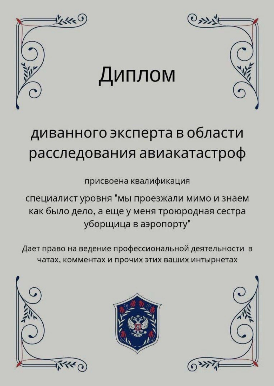 Пвошники сбили ракетой. Диспетчеру передали про план ковёр, а борт что у него навигация ебнуло чёт летится криво. Диспетчер в рамках своих полномочий сообщил, что ковер введен по всему Кавказу.