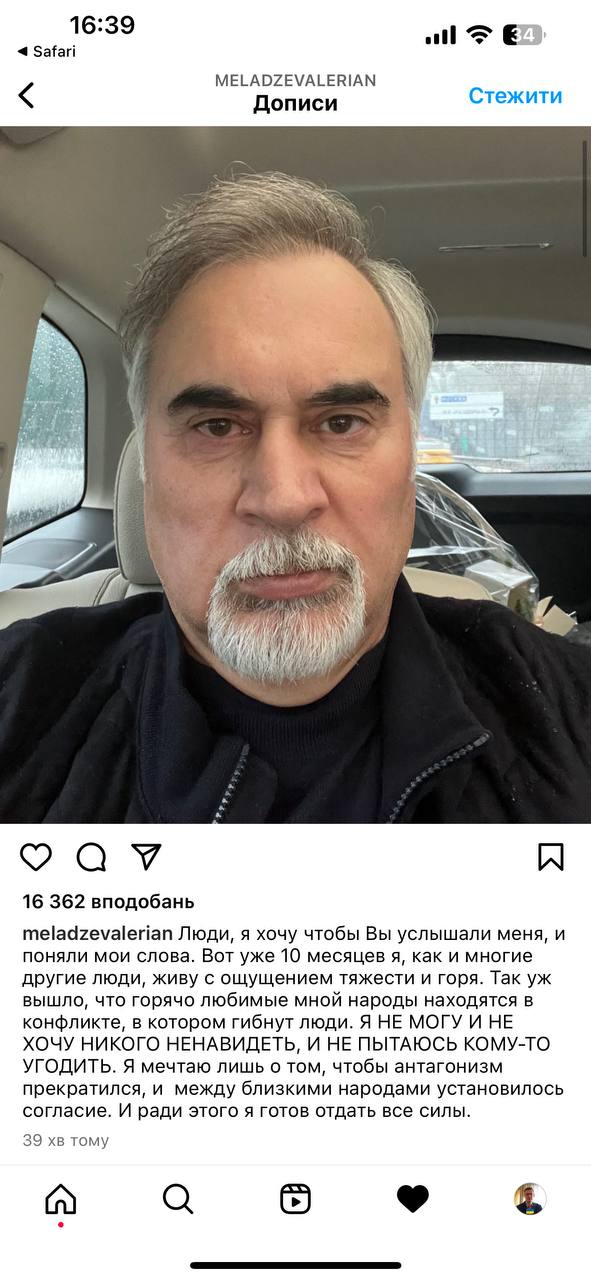 Меладзе мечтает о "согласии", не о "мире". Раз нет войны, то зачем добиваться "мира"? Просто у кого-то с кем-то конфликт. Ну так вышло 10 месяцев назад. А Меладзе нужно "согласие". Когда агрессор нападает на жертву, нужно подождать появления "согласия". И ради этого Меладзе отдаст все свои силы.