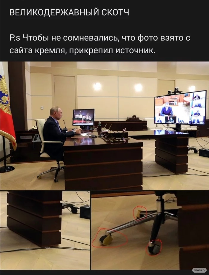 Это разные путины. Того который в бункере на колесиках прикатывают для совещаний через телеконференцию. Помнишь фото, где колески на время совещания скотчем заматывают, чтобы не откатился?