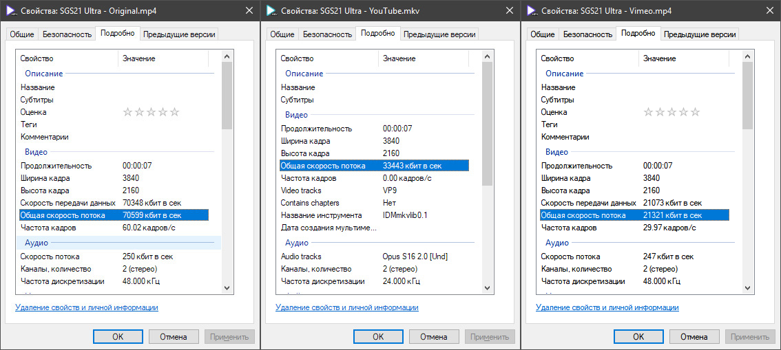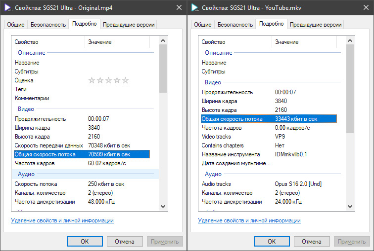 Потом точно так же протестируйте это видео на обоих сервисах. Потом точно так же скиньте честные результаты – относительно исходного видео (с указанием его параметров, разумеется). И, разумеется, залейте куда-нибудь именно исходное видео вообще без обработки – для сравнения с оригиналом.