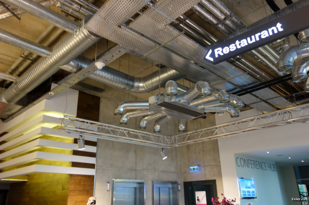 Дизайн потолка напоминает дизайн хорошего ночного клуба - мода на трубы появилась лет десять назад и до сих пор не прошла.