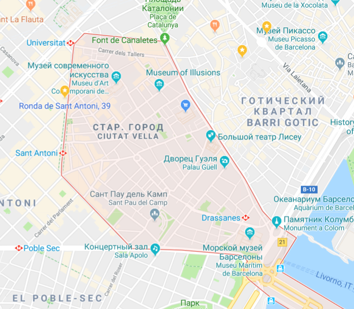 Это, конечно же, район под названием Эль Раваль. Он идет по левую сторону от главной туристической улицы Барселоны Ла Рамбла. Что интересно, по правую сторону от Ла Рамбла идет один из самых крутых и дорогих районов города - Готический квартал.