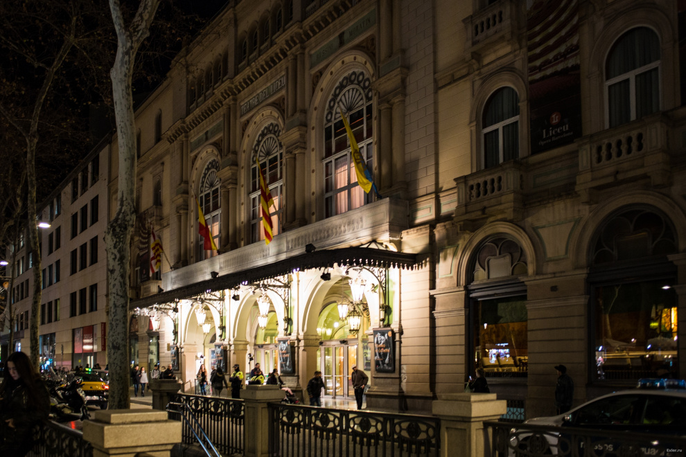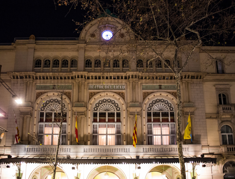 Большой театр "Лисео", один из важнейших театров Испании. Построен в 1847 году на средства частных лиц. Имеет своеобразную историю: в 1861 году горел, в 1893 году анархист взорвал в нем бомбу во время представления, в гражданскую войну театр сохранили благодаря городскому совету, после войны его национализировали.