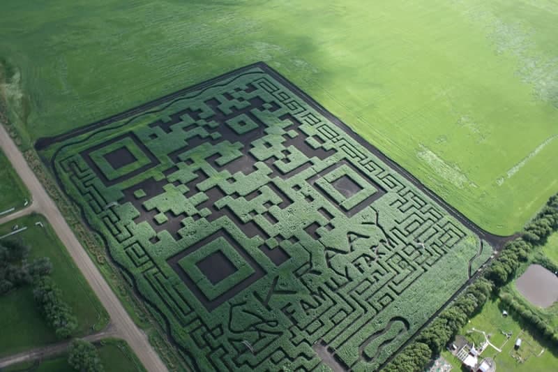Владельцы семейной фермы Kraay в Канаде на своем поле выстригли гигантский QR-код, ведущий на сайт фермы. Смотрится прямо-таки монументально.