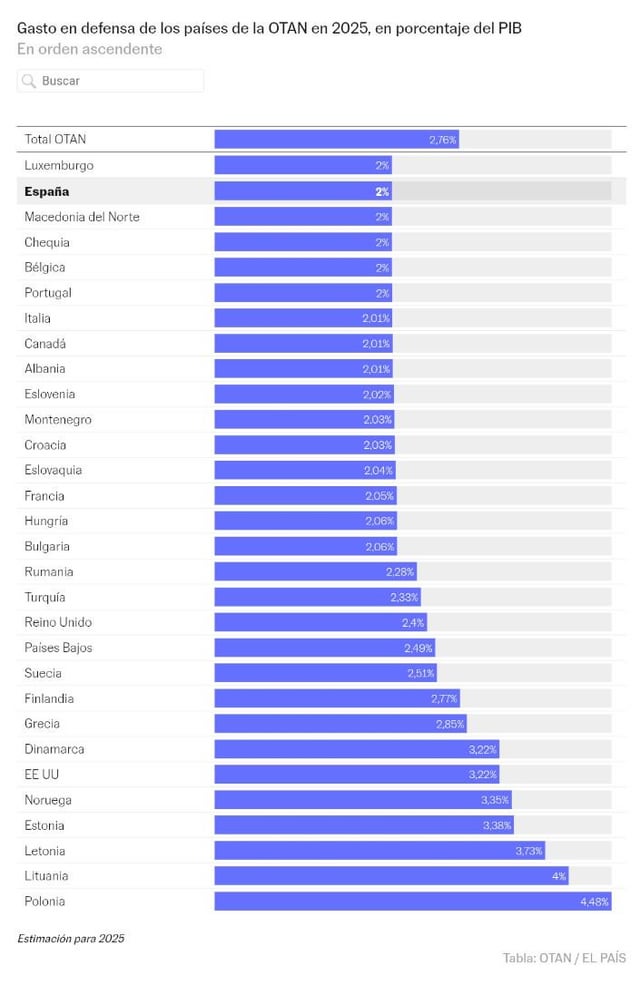 Однако премьер-министр Испании Педро Санчес заявил тогда, что не будет брать на себя обязательства по достижению цели в 5%, назвав ее «несовместимой с нашим государством всеобщего благосостояния и нашим видением мира».