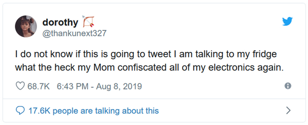 Затем девочке удалось вернуть приставку Nintendo, но через несколько дней родители снова забрали у нее всю технику. Тогда Дороти сделала твит с помощью умного холодильника LG.