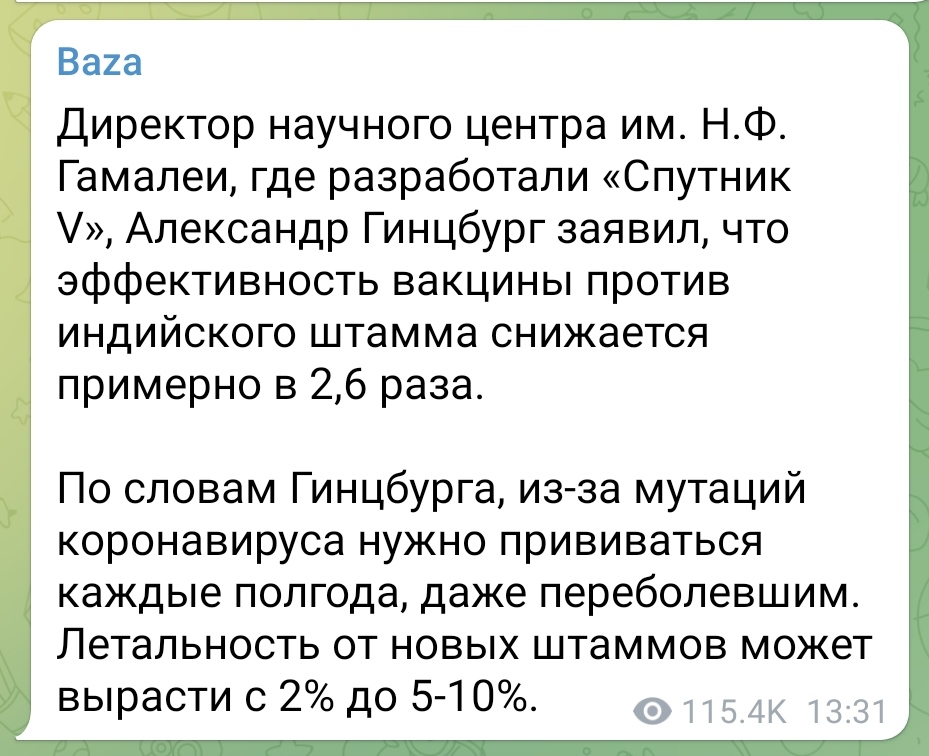 Причиной провала кампании по вакцинации он объявил ментальность россиян и "сохранившуюся с 90-х" свободу слова.