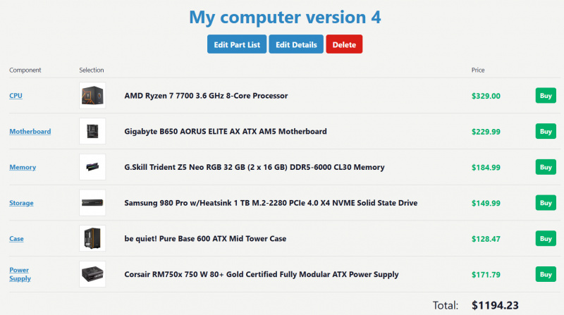 1. Процессор AMD Ryzen 7 7700X, а не 7700, причем он еще и дешевле, а при этом мощнее. Но там в комплекте нет кулера, на что наплевать, потому что кулер все равно нужно брать отдельный - я его туда включил.