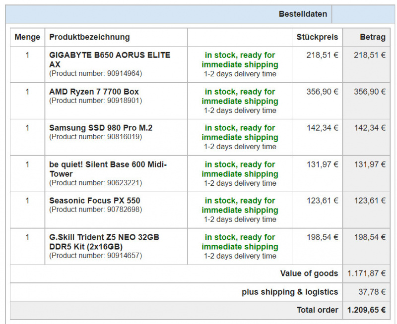 Только что хотел написать. Зашёл туда, поменял доставку на Испанию, цена Gigabyte B650 Aorus Elite AX 218,51 + 20 евро пересылка в Испанию, что даже с учётом пересылки дешевле, чем в местном без неё. У Computeruniverse сейчас, видимо, акция на эту материнку, т.к., у них она дешевле всех.