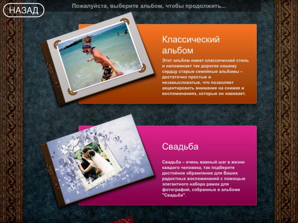 Выбираем, например, "Классический альбом". Нам выводятся заготовки страниц.