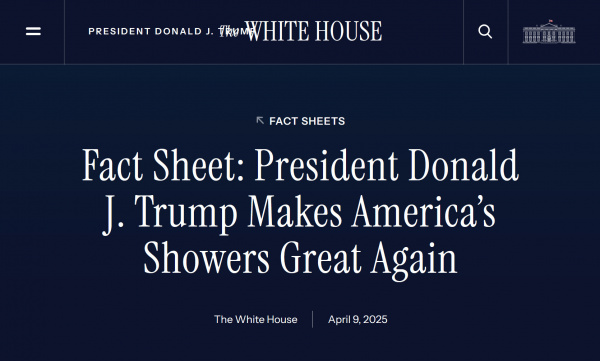 Дональд Трамп отменяет это регулирование и отныне позволяет американцам использовать любые душевые лейки, чтобы они получали воду с полным напором.