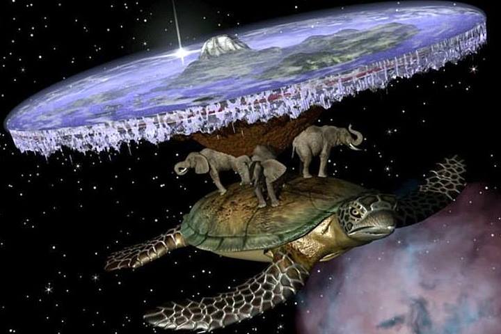 Он про плоскую Землю ("на краю Земли - у Земли есть край - она диск")