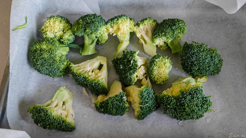 Разогреваем духовку (верхний и нижний нагрев) до 230 градусов, после чего туда помещаем емкость примерно на 20 минут. (Ближе к величественному финалу желательно контролировать процесс, и доставать брокколи по готовности.)