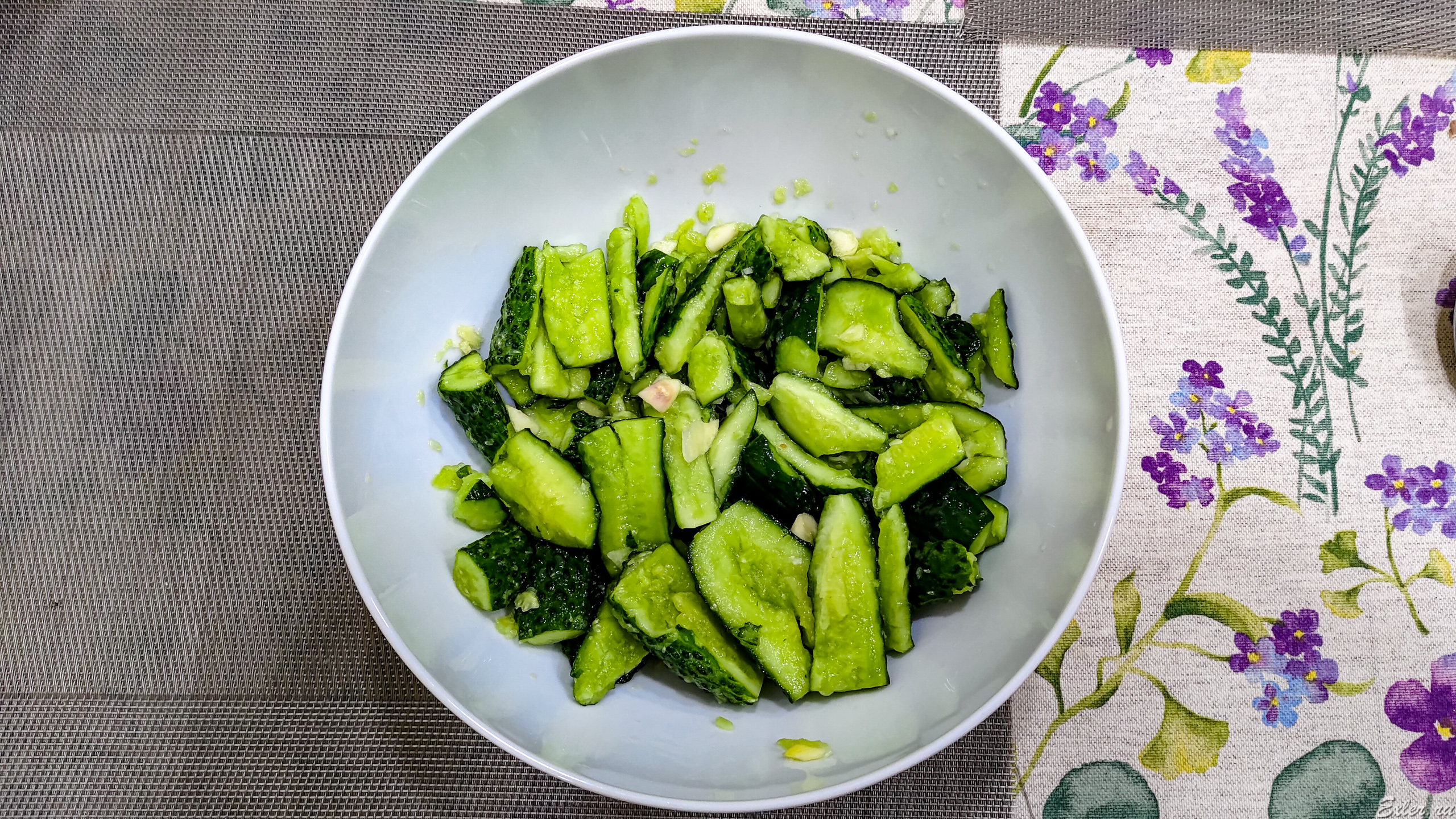 1) Избивать огурцы обязательно (без пакетов, просто в миске топориком для мяса или толкушкой). Вкуснее и позволяет стравить лишний пар 😄