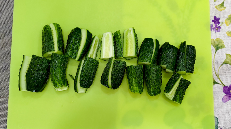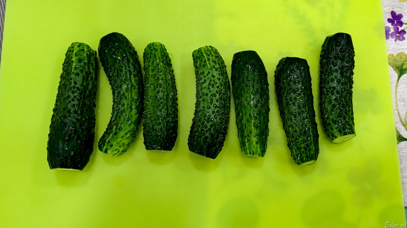 Берем несколько огурцов. Лучше всего брать маленькие и пупырчатые, но, на крайний случай, сойдут, например, длинные и гладкие голландские.