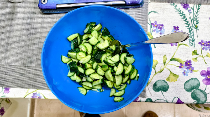 1) Огурцы нужно просто натирать на крупной терке. Все эти насилия и избиения в натянутых пластиковых пакетах - лишнее.
