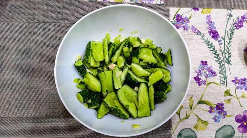 В обсуждениях нескольких выпусков этой рубрики мне несколько раз писали о салате "битые огурцы" или "избитые огурцы". Я пробовал несколько разных рецептов, в конце концов остановился на том, который понравился больше всего, потом его немного модифицировал, и вот в модифицированном виде готовлю практически ежедневно.