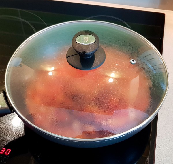 Тушим примерно час. Но очень важно следить т.к. когда вода выпаривается соус может подгореть, нужно следить за температурой ну и помшивать.