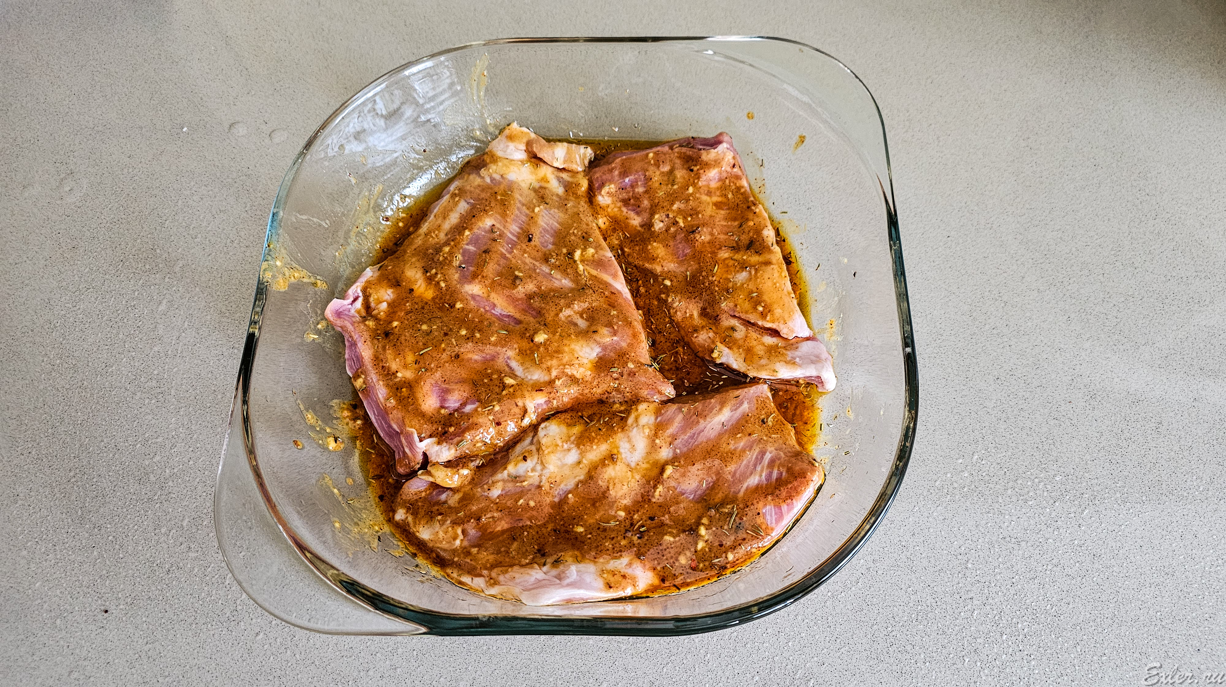 Тогда мы начали мясо предварительно мариновать различными способами. И это очень даже положительно стало влиять на вкус готового блюда, запеченного в духовке.