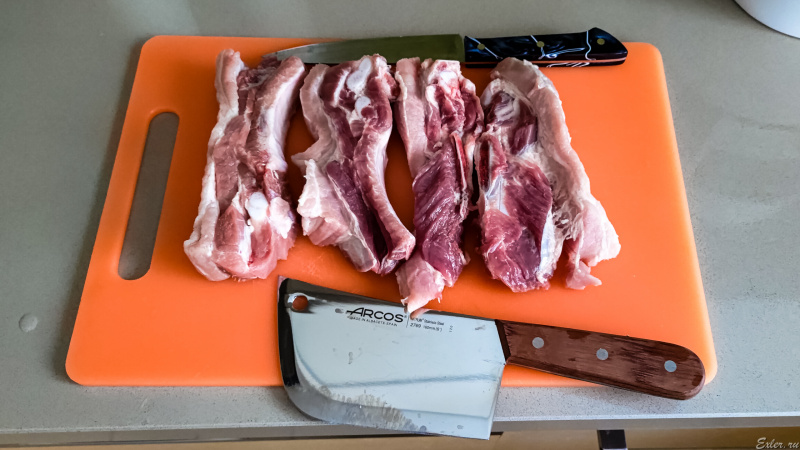 Берем отруб ребер. (Фото это, может, и не передает, но здесь кусочек увесистый - на кило.)