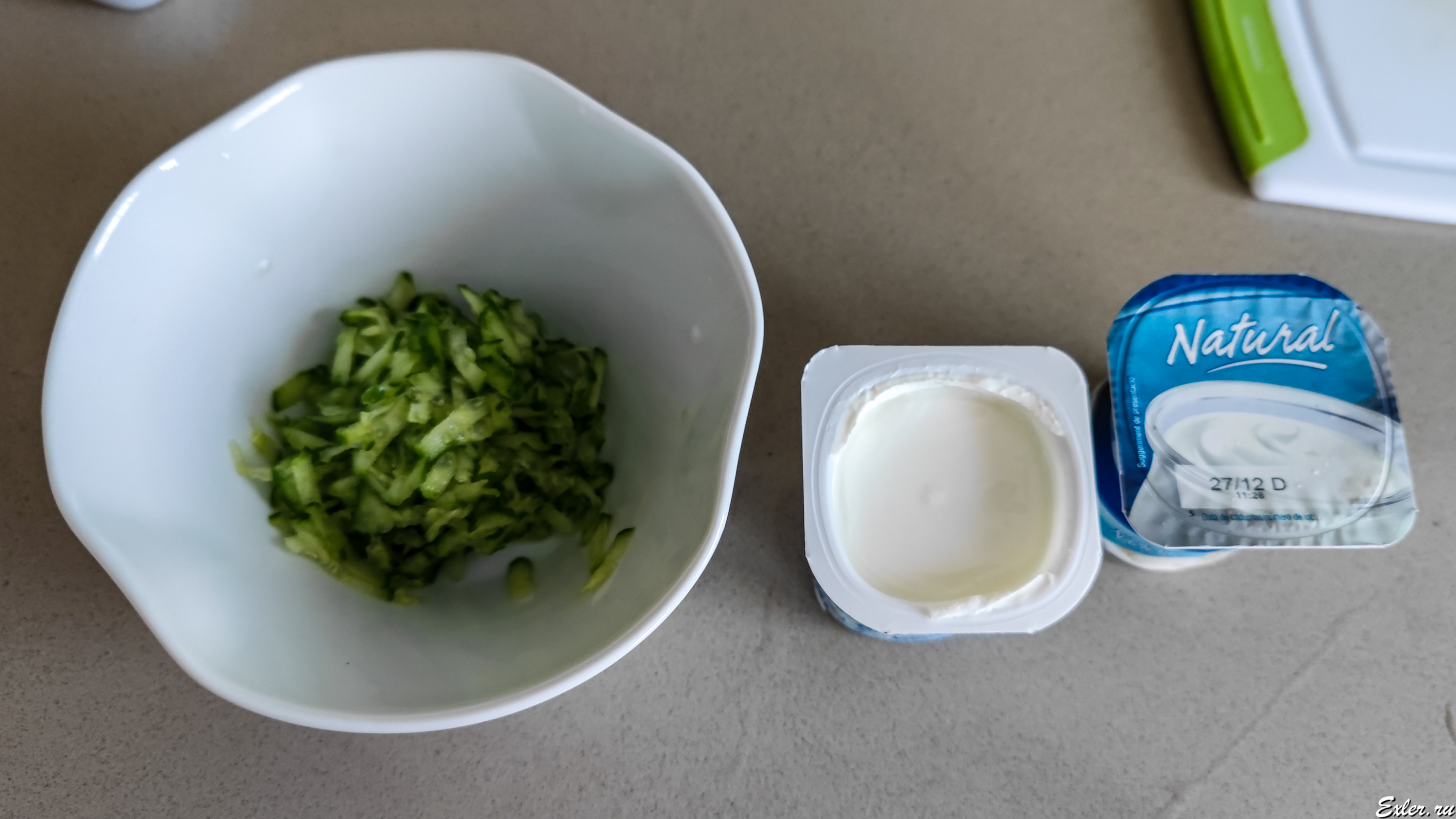 Натёртый огурец лучше отжать, потому что воды там слишком много.
