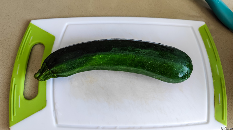 Берем кабачок. Лучше покрупнее, но сойдет и пара более мелких, чтобы тренировать руку в процессе переворачивания кругляшков.