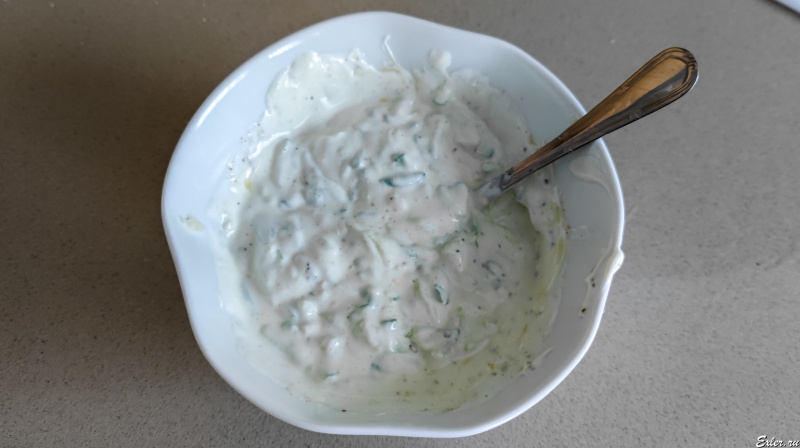 Теперь, когда кабачок выдерживается перед готовкой, переходим к приготовлению соуса дзадзики, потому что соус совершенно точно должен быть готов до получения уже пожаренных кабачков.
