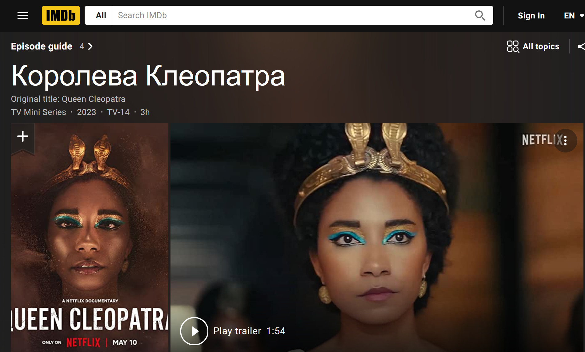 На IMDB все-таки нашли в себе мужество опубликовать зрительский рейтинг нового сериала "Королева Клеопатра", в котором Клеопатру сыграла афроамериканка Аделе Джеймс. Судя по зрительским отзывам, создатели сериала решили, что самого этого факта будет достаточно для всемирного успеха у зрителей, но что-то пошло не так.