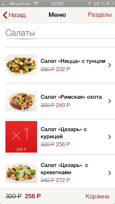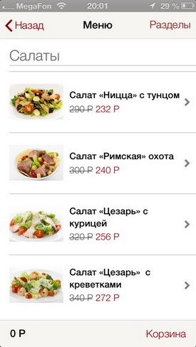 Скидки порой бывают весьма значительные: на заказанную через приложение еду есть даже 60% скидки. Для людей с хорошим аппетитом и больших компаний – самое оно.