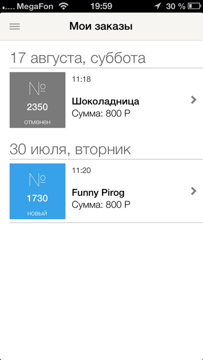 Ваши заказы запоминаются и список прошлых заказов всегда можно просмотреть. Это удобно потому, что можно повторить любой заказ, не набирая снова те же самые блюда в корзину. Тем, кто часто заказывает еду на работу, это явно понравится.