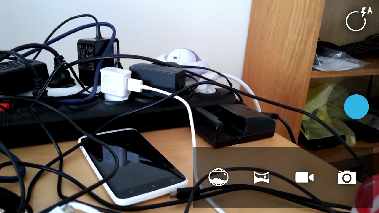 Режимы - сферическая панорама, обычная панорама, видео, фото. Режим фотографирования практически без настроек (но старое приложение доступно), зато отснятый кадр можно обрабатывать различными способами.