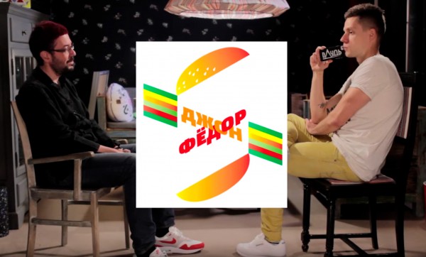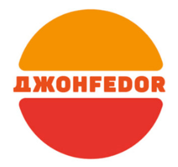 На предложение Дудя назвать три работы студии, которыми Артемий гордится, он называет логотипы "Яндекса", Большого театра и бургерной "Джон Федор". Вот этот гениальный логотип.