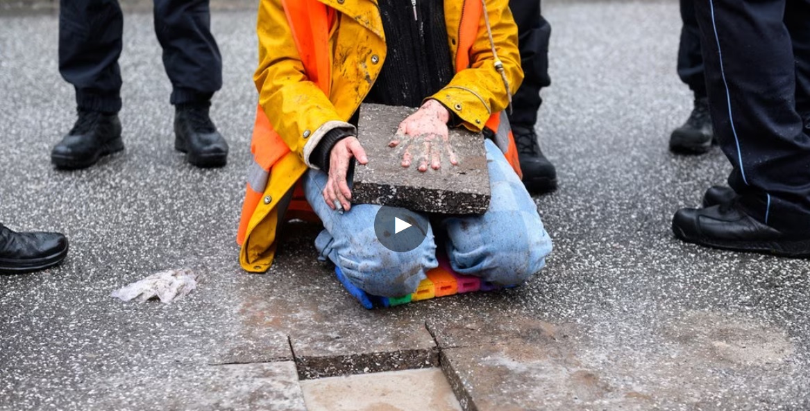 А вот так сейча в Гамбурге удляют активистов с дороги. Вырезают кусок покрытия, а птклеиваться они должны сами.