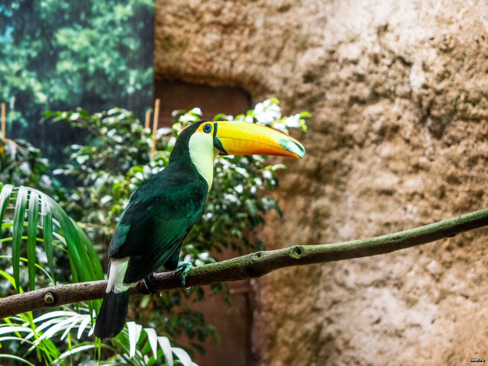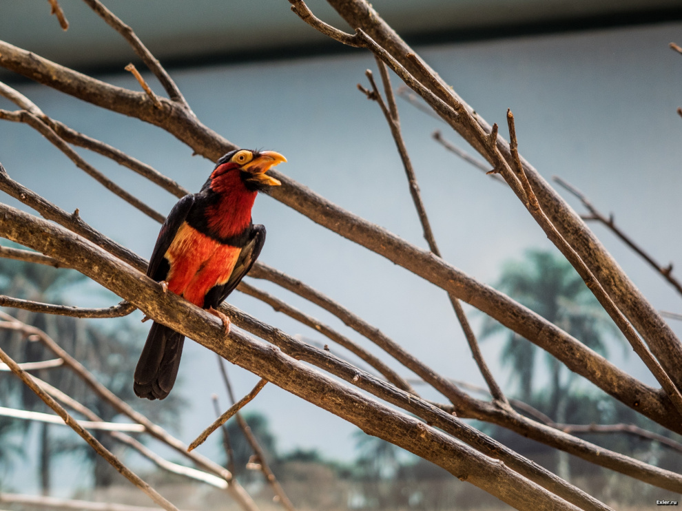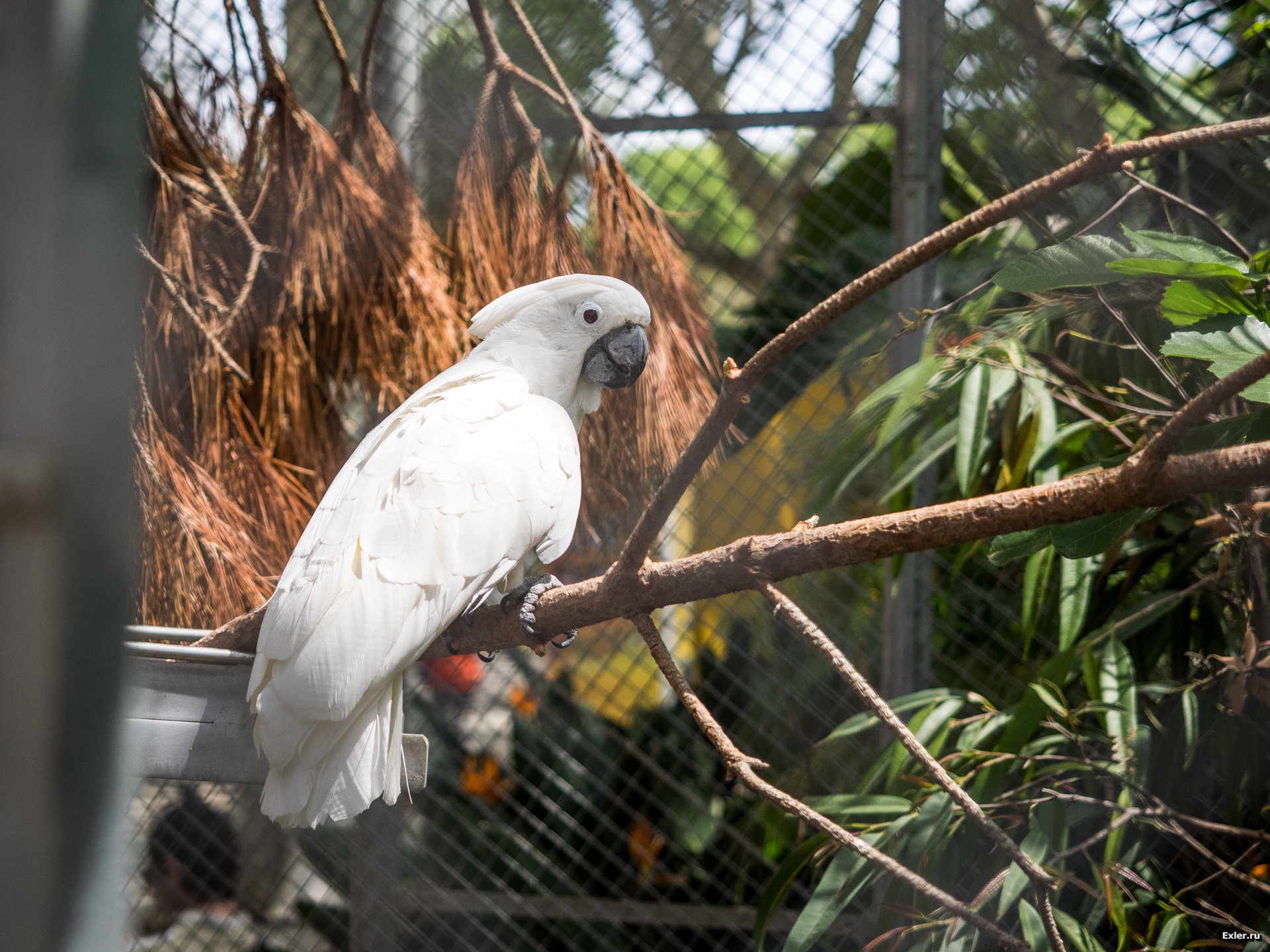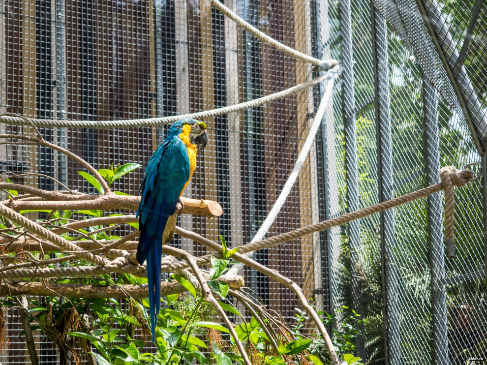 Всякие птички-невелички. В здоровенных круглых клетках, уходящих в небеса.