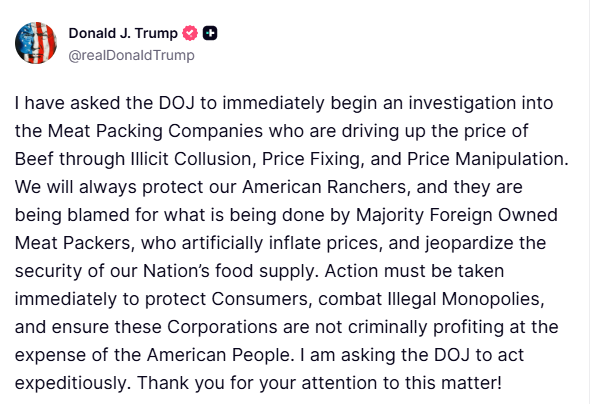 Как отмечает Reuters, это произошло после того, как демократы одержали ряд побед на выборах в органы власти штатов и местного самоуправления в Вирджинии, Нью-Джерси и Нью-Йорке, где центральной темой избирательных кампаний стали растущие цены в том числе и на продукты питания. Согласно индексу потребительских цен за сентябрь, говяжий фарш подорожал почти на 13%, а стейки — почти на 17% по сравнению с прошлым годом. Общие средние расходы американцев на продукты питания возросли на 2,7%.