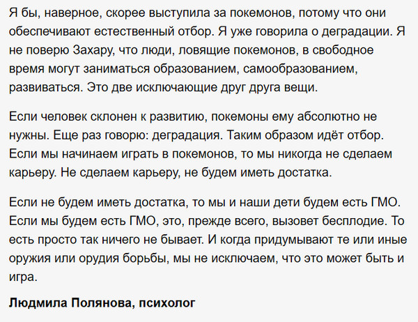 Кстати, чем больше читаю то, что по поводу этих несчастных покемонов несут всякие психологи, попы, политики и прочая шелупонь, тем больше хочется взять уже планшет в руки и пойти ловить этих милых забавных зверушек.