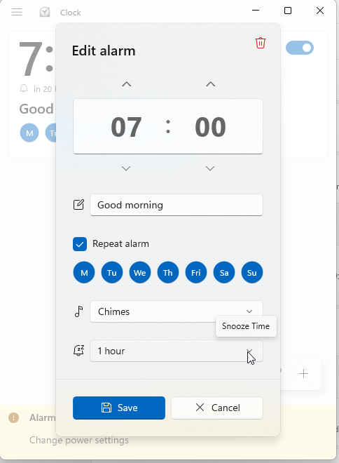 Если это функция "Snooze", то Алексу придется взаимодействовать с ПК — каждый раз при включении сигнала нажимать кнопку "Snooze", а ему вроде бы этого не хочется делать.